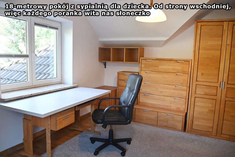 Czwarta sypialnia na półpiętrze z dwoma oknami. Może posłużyć jako pokój gościnny.