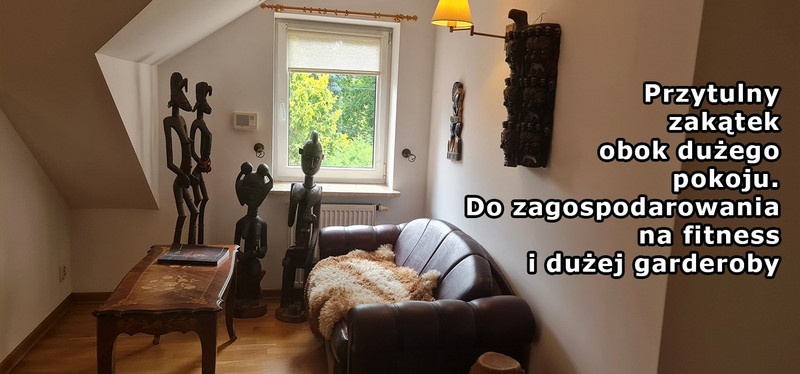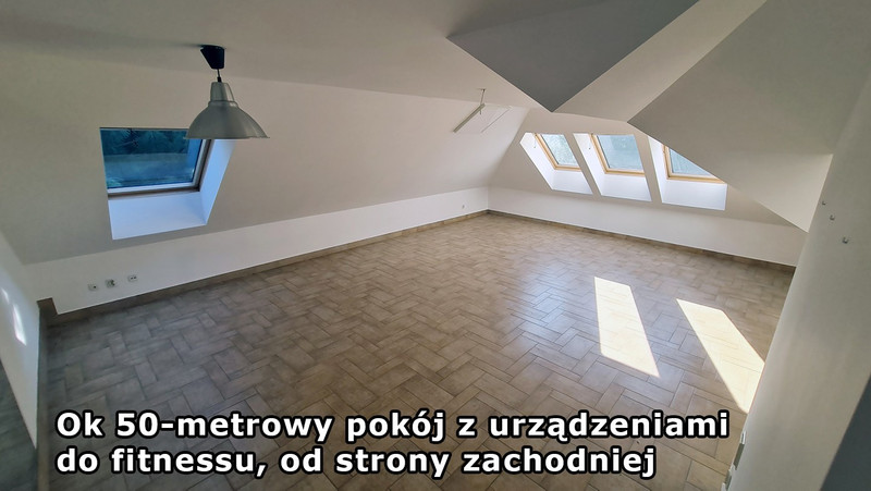 Doskonale nasłoneczniona sala także na fitness, zapewniający możliwość aktywnego trybu życia, bez konieczności opuszczania domu.