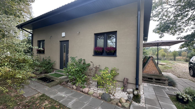 Sprzedam nowy dom drewniany szkieletowy, zamieszkały od 2 lat. Dół otwarty - kuchnia, salon, łazienka, kotłownia, na górze poddasze użytkowe z dwoma pokojami i drugą łazienką. Projekt pierwotny trochę zmodernizowany na więcej otwartej przestrzeni, dlatego jest możliwość zrobienia dwóch dodatkowych pokoi jeśli zaistnieje taka potrzeba.