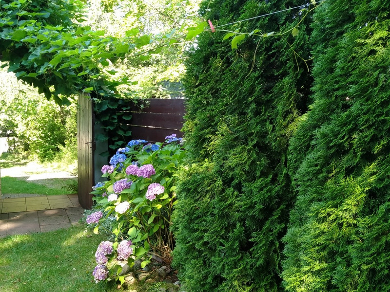 W bezpośrednim sąsiedztwie działki są tylko 2 inne domy. Wszystkie 3 domy mają podobną architekturę, co tworzy harmonijną enklawę na skraju zadrzewionego jaru.