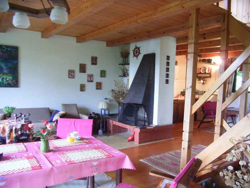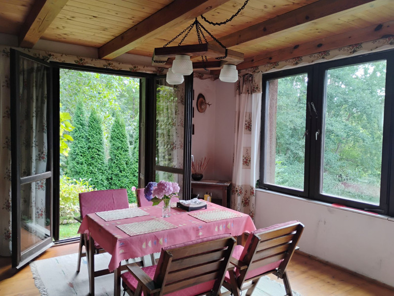 Dom jest mieszkalny, murowany, piętrowy. Powierzchnia mieszkalna ma 100 m2 plus podpiwniczenie i pomieszczenie garażowe. Okna i drzwi są drewniane. Drewniane są również piękne podłogi oraz odsłonięte belki konstrukcyjne.