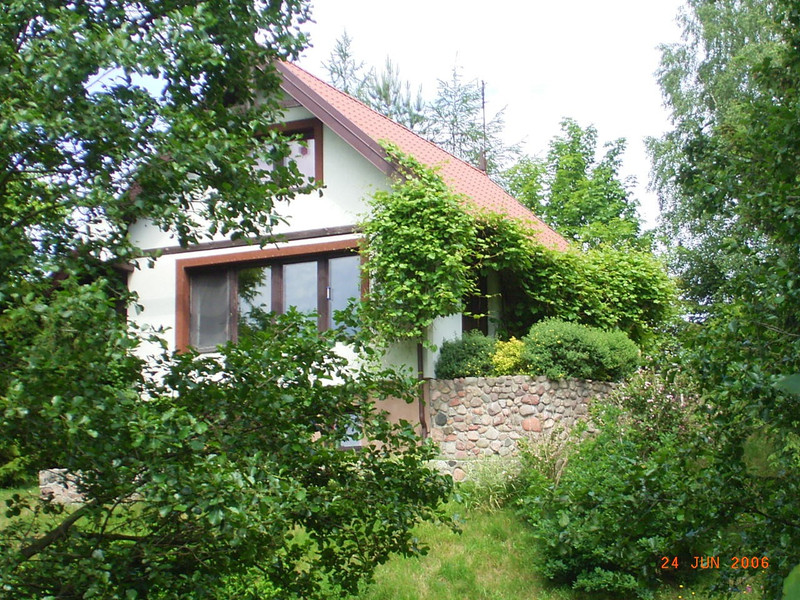 Działka ma 1300 m2, jest położona 80 metrów od brzegu jeziora.