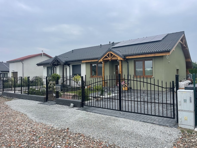 Okna to pięciokomorowe, trójszybowe PCV dwustronnie okleinowane z roletami elektrycznymi. Tarasowe okno przesuwne w cenie domu .W całym budynku zostało zainstalowane ogrzewanie podłogowe, a w łazience dodatkowo grzejnik. Ogrzewanie zastosowane w domu to pompa ciepła - czyli ekologiczne i tanie rozwiązanie (koszt prądu do 2.2tys. zł za ogrzewanie oraz ciepłą wodę użytkową za cały rok). Dodatkowo jestem otwarty na instalację fotowoltaiki, która długoterminowo przyczyni się do generowania oszczędności za energię elektryczną. Szczegóły do omówienia z osobami zainteresowanymi.