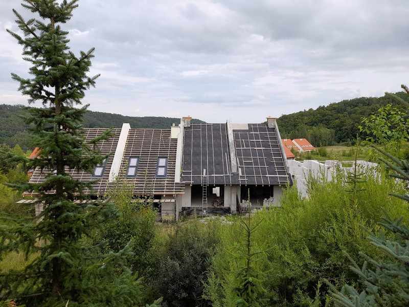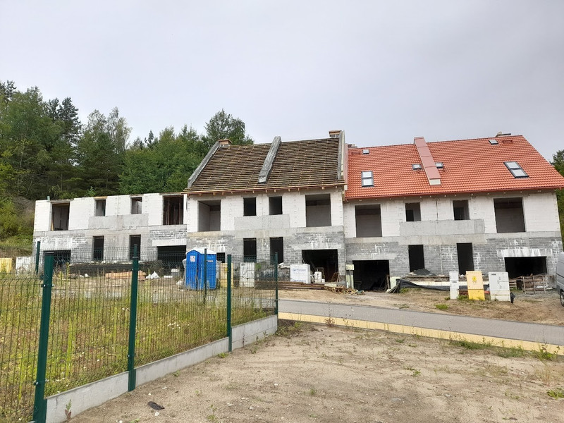 Środkowy segment szeregowca z garażem w trakcie realizacji inwestycji. Bardzo ładnie położony, pod lasem, zacisznie, z widokiem na jezioro, lokalizacja 8 minut od zjazdu z wykańczanej nowej obwodnicy Trójmiasta, 5 minut do Kolbud. Spokojne sąsiedztwo, gotowa droga utwardzona. Obecnie w stanie surowym otwartym, energooszczędny, z ogrzewaniem hybrydowym (gaz, pompa ciepła, kominek) przewidywany termin ukończenia do zamieszkania 30.06.2026. Możliwość wykończenia pod klucz.