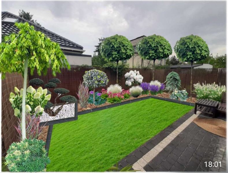 Urządzony ogród z systemem nawadniania (ostatnie zdjęcie to wizualizacja, na wiosnę będzie kładziona trawa z rolki).