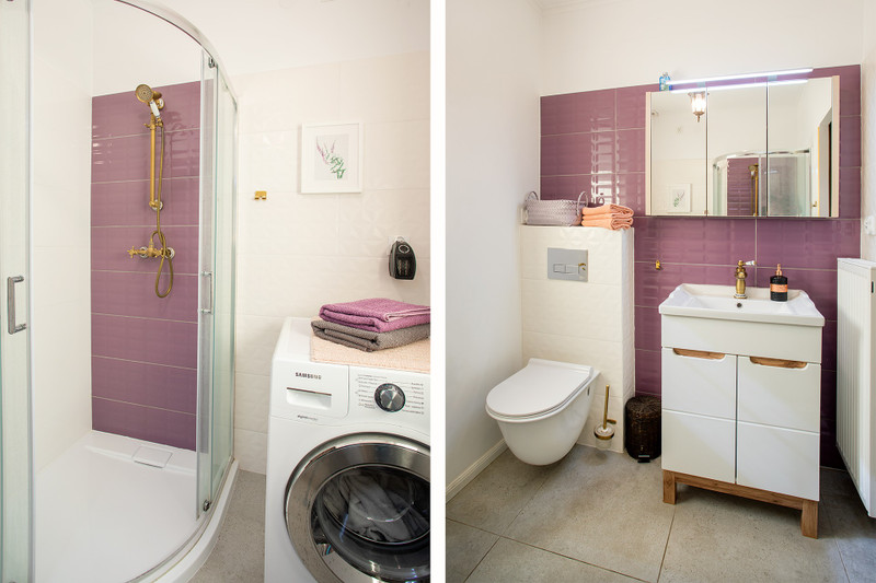łazienki z prysznicami typu walk-in, WC typu geberit, ogrzewaniem podłogowym, grzejnikami