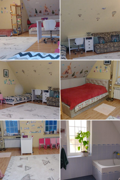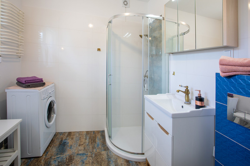 sypialnie z wyposażeniem. Budynek po generalnym remoncie, urządzony w stylu rustykalnym. Łazienka z niskim brodzikiem, pralką, oknem, WC typu geberit. Nad całą powierzchnia domu znajduje się