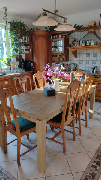 Kuchnia: drewniana w stylu włoskim rustykalnym, blaty z naturalnego granitu, jasna i przestronna.