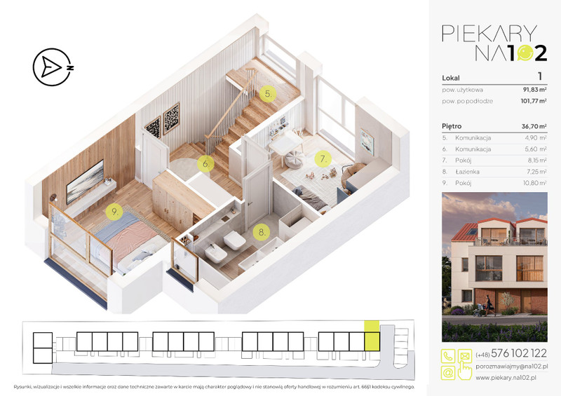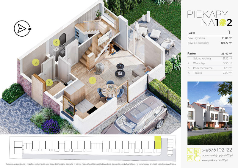 Nowoczesny dom w zabudowie bliźniaczej o powierzchni całkowitej 102 m² (92 m² powierzchni użytkowej), zlokalizowany na kameralnym, ogrodzonym osiedlu w malowniczych Piekarach, tuż przy granicy Krakowa. To idealna propozycja dla osób poszukujących komfortowego miejsca do życia w spokojnej okolicy, z jednoczesnym szybkim dostępem do miasta.