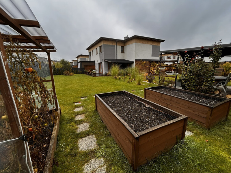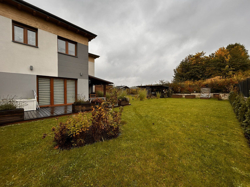 Niewątpliwym atutem nieruchomości jest duży, zadbany ogród. Znajdziemy w nim taras dostępny bezpośrednio z salonu, letnią kuchnię, idealną na sezon grillowy oraz pojemny domek na narzędzia.