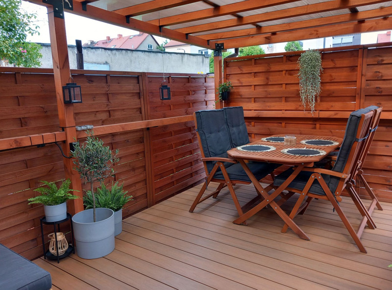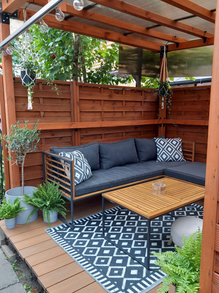 *podwórko z drewnianą altanką