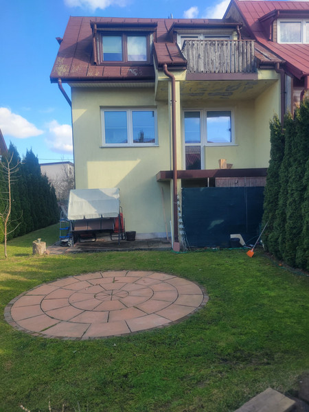 Dom blizniak zamieszkaly od 2008 . Dom w bardzo dobrej lokalizacji 1 km do A4 ..do rynku 4km... sklep Stokrotka na miejscu..... studnia z czysta woda ! Kominek. w salonie z rozprowadzeniem ciepla .. daje rade w zimie :) ogrzewanie gazowe. jako rezerwowe jak nie palimy kominkiem . Na parterze garaz i dwa pokoje z wyjsciem na ogrodek . Pierwsze pietro Salon z kominkiem 6 x4M . kuchnia i Wc . Poddasze 3 sypialnie i lazienka . ogrodek jak widac na zielono wysokie Tuje 3 metry.......Parter Gospodarczy do wykonczenia z mozliwoscia do zamieszkania lub .... dzialk 3.5 ara