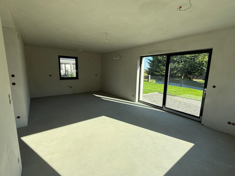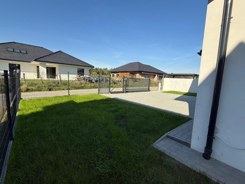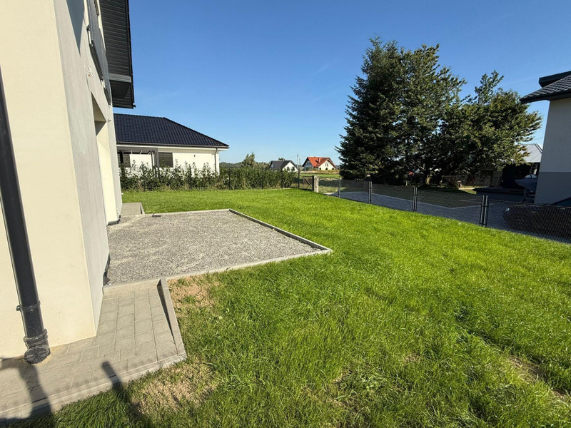 Stan : developerski (ogrodzony, brama wjazdowa z napędem, kostka brukowa ,styropian 20cm elewacja,tynki wewnętrzne wapienno cementowe,stolarka okienna trzyszybowa,parapety,brama garażowa Wiśniewski z automatyką,teren odwodniony wyplotowany, ogrzewanie podłogowe cały budynek,instalacja pod klimatyzacje, piec Valiant z zasobnikiem na wodę ) budynek odwodniony teren wyplantowany.