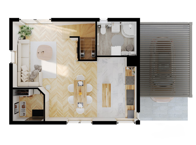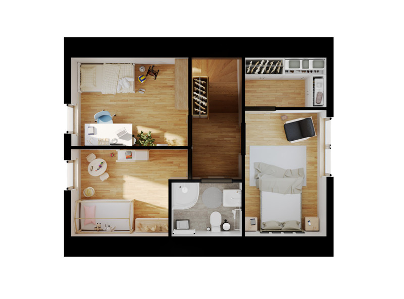 możesz łatwo zaadaptować pokoje np. na gabinet, pokój gościnny lub przestrzeń do pracy zdalnej.