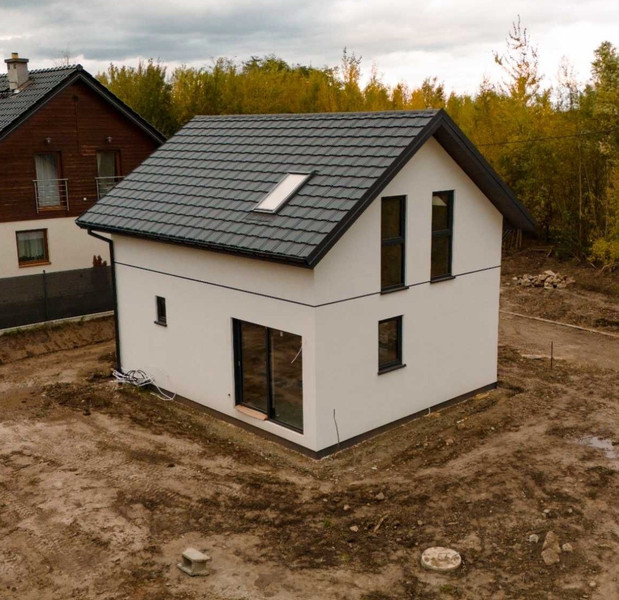 Dom został wykonany w wysokim standardzie, elewacja i dach są w pełni wykończone z