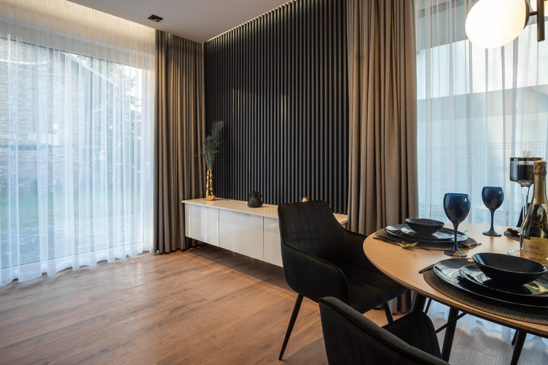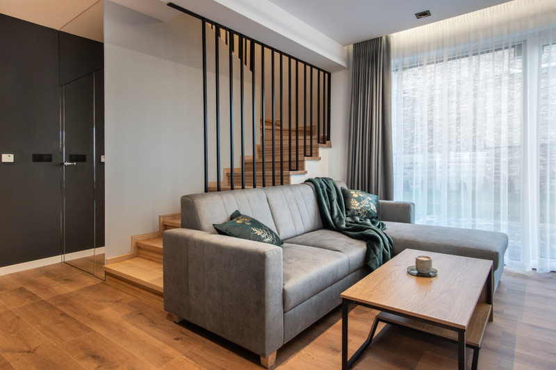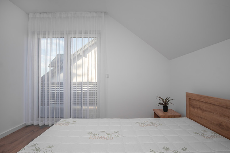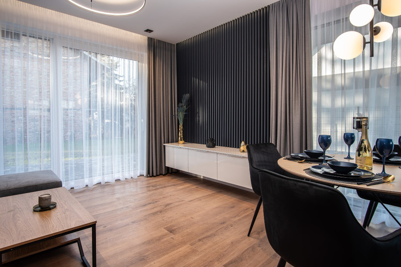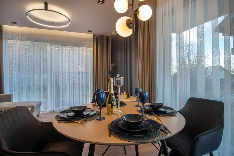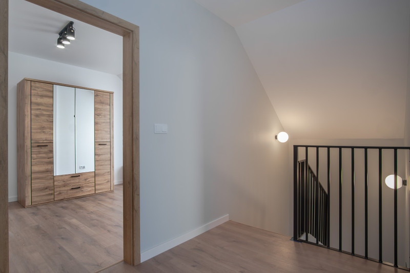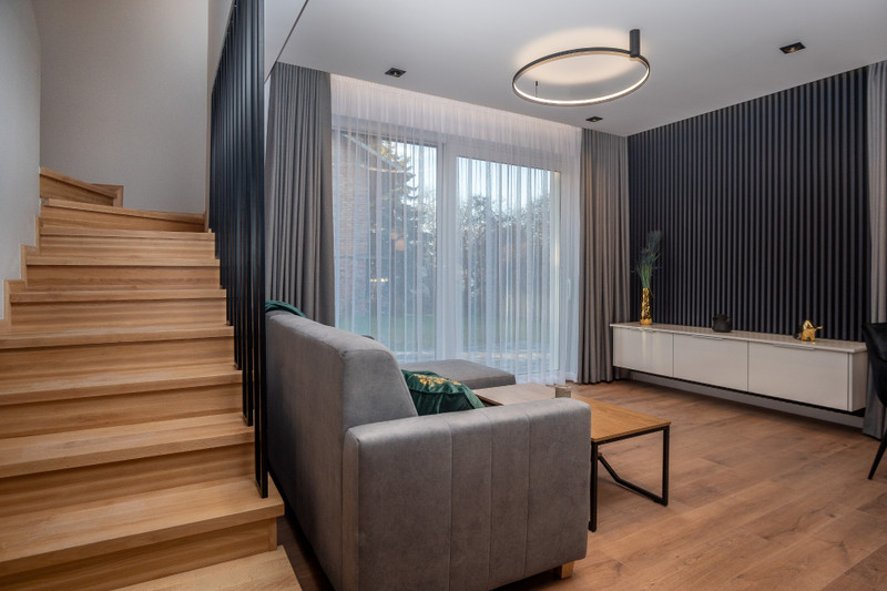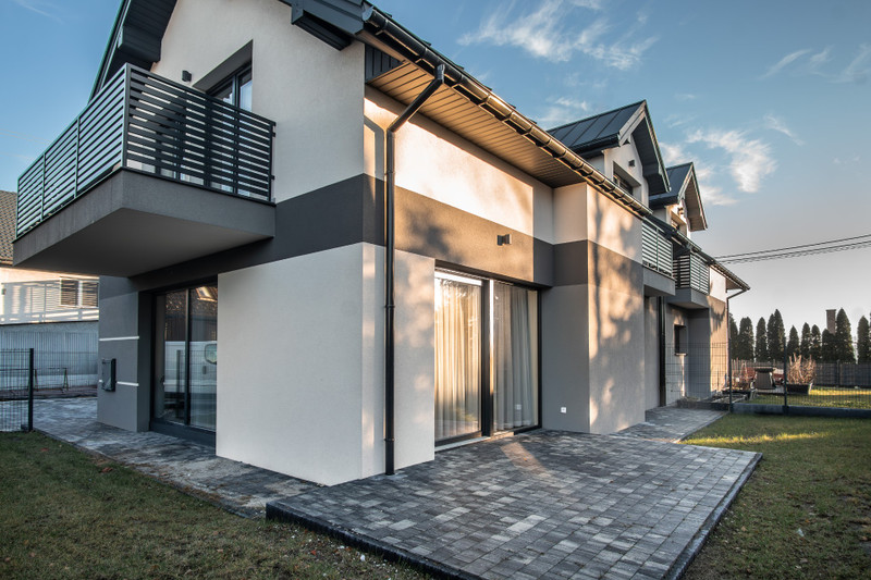 Nieruchomość jest gotowa do użytku, w pełni wykończona i umeblowana (jak na zdjęciach), znajduje się w zabudowie bliźniaczej. Dom położony jest na zamkniętym osiedlu, na którym znajdują się wyłącznie trzy domy. Wszystkie domy są na sprzedaż, posiadają ten sam metraż i taki sam standard wykończenia.