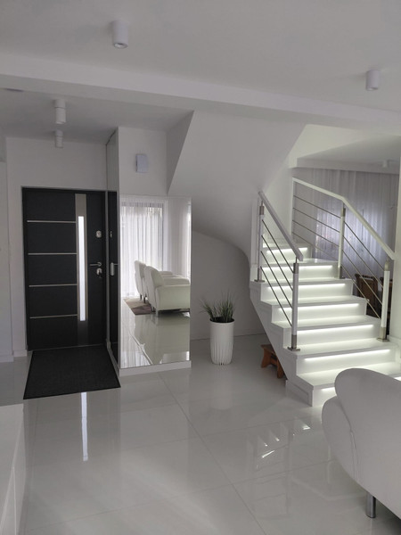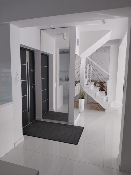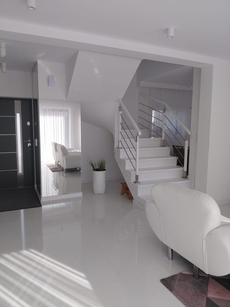 Dom wyróżnia się wysoką jakością wykonania, przestronnym układem pomieszczeń oraz nowoczesną architekturą. Na parterze znajduje się duży salon z wyjściem na taras, jadalnia, kuchnia, łazienka oraz pomieszczenie gospodarcze. Piętro stanowi komfortowa strefa prywatna – trzy ustawne sypialnie, garderoba i przestronna łazienka.
