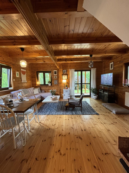 Na sprzedaż oferujemy piękny, drewniany dom z 2006 roku o powierzchni użytkowej 93m² (+ 40 m² oranżerii) położony na działce 1337m² w wyjątkowej lokalizacji – tuż przy parku w Młochowie.