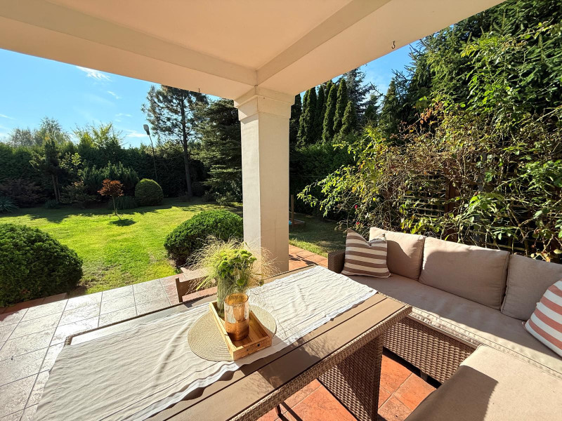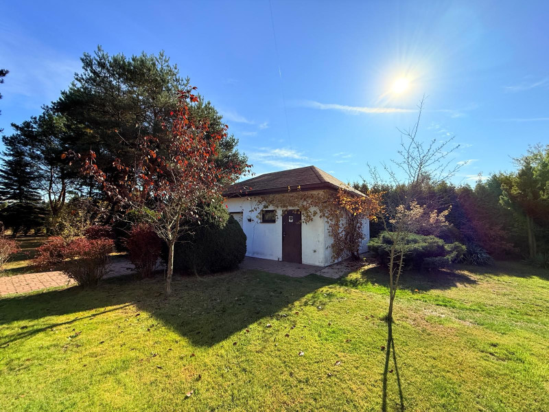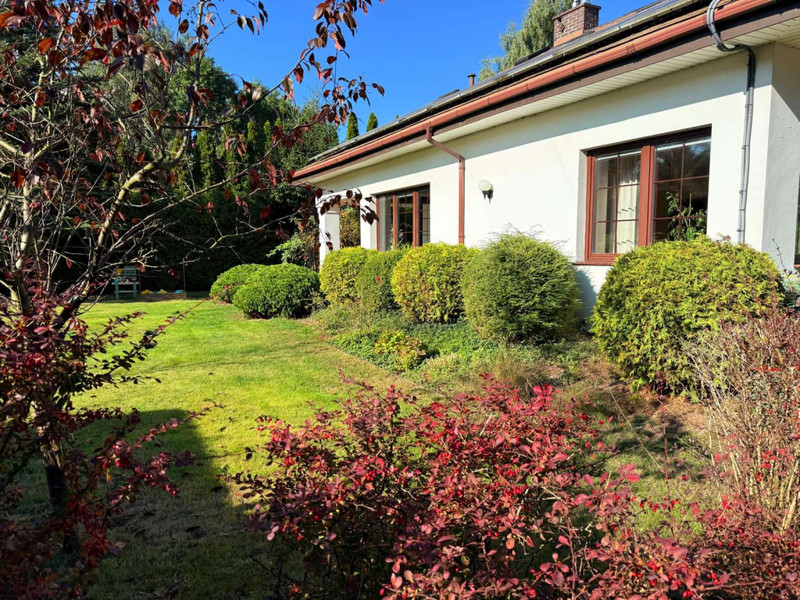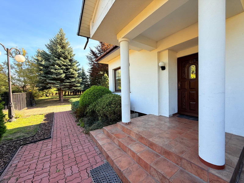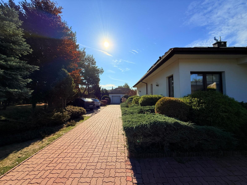 Wolnostojący dom z 1997 roku, o formie nawiązującej do klasycznego dworku, położony na działce 2 350 m² z dojrzałym starodrzewiem i wysokimi nasadzeniami, które całkowicie izolują posesję od otoczenia.