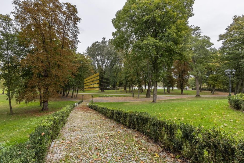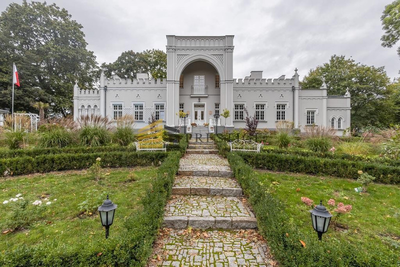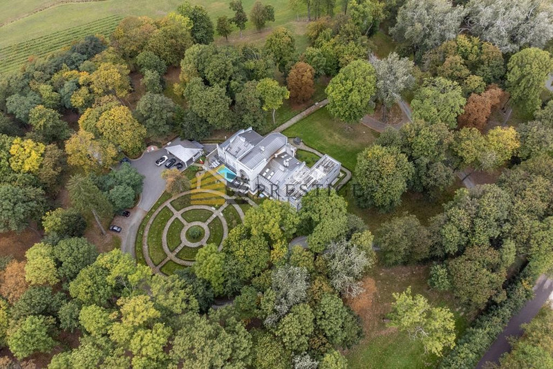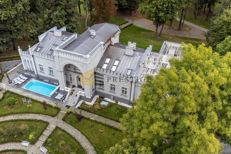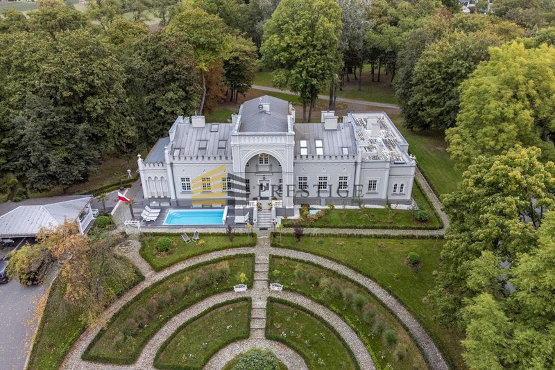 Obiekt usytuowany jest na wzgórzu, otoczony klasycznym parkiem angielskim, stawem i alejkami do spacerów. Na terenie posiadłości znajduje się również rejestrowane, utwardzone lądowisko dla śmigłowców z hangarem, co stanowi doskonałe uzupełnienie luksusowego charakteru nieruchomości.