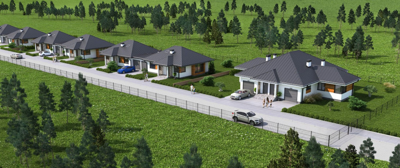 Na działce znajdują się kilkumetrowe sosny. Inwestycja będzie się składała z 10 budynków dwulokalowych -każdy o powierzchni 100 m2 z możliwością aranżacji poddasza dodatkowe 40 m2
