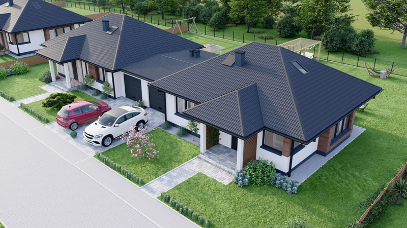 Oferujemy Państwu nowoczesne domy w zabudowie bliźniaczej, położone wśród zieleni pod Puszczą Kampinoską.