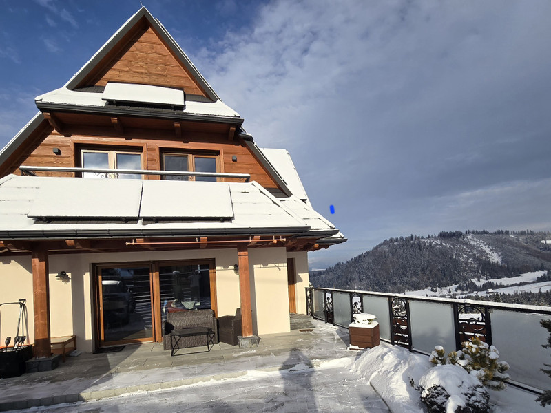 Dom położony na wysokości ok. 800 m.n.p.m w urokliwej miejscowości Dursztyn. Przepiękne widoki - Panorama Tatr, Gorce, Pieniny i Babią Górę. Usytuowany przy tatrzańskiej magistrali rowerowej. Wykonany z materiałów najwyższej jakości. Nowoczesna głębinowa pompa ciepła plus fotowoltaika. Ogrzewanie podłogowe. Roczne koszty energii el. i ogrzewania nie przekraczają 3,5 tys PLN. Idealna baza wypadowa do Białki Tatrz. Zakopanego, Zalewu Czorsztyńskiego, w Gorce, Pieniny i na Słowację. Sauna, stacja ładowania samochodów elektrycznych. Brama wjazdowa i rolety zewn. sterowane elektrycznie. Dwie łazienki. Nowoczesny kominek z nawiewami. Woda oligoceńska z własnej studni głębinowej. Przydomowa oczyszczalnia ścieków. Umeblowany do zamieszkania lub pod wynajem.