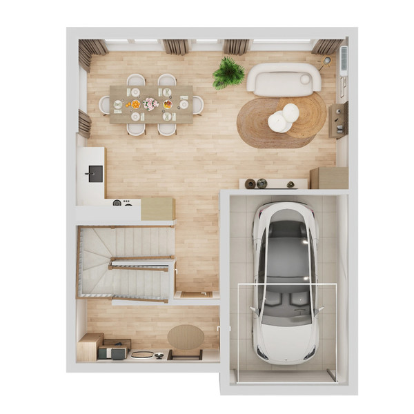 Dom został zaprojektowany z myślą o wygodzie codziennego życia i maksymalnym wykorzystaniu przestrzeni.