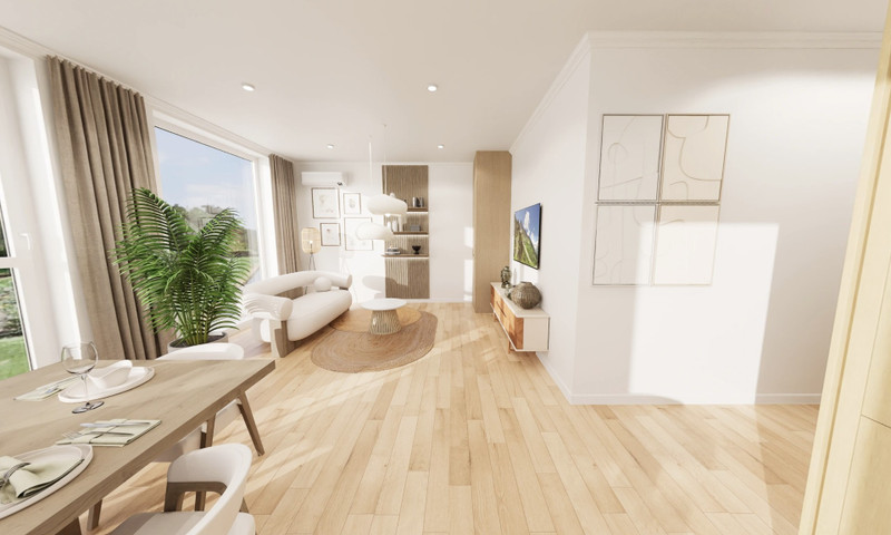 • przestronny salon z aneksem kuchennym i miejscem na jadalnię