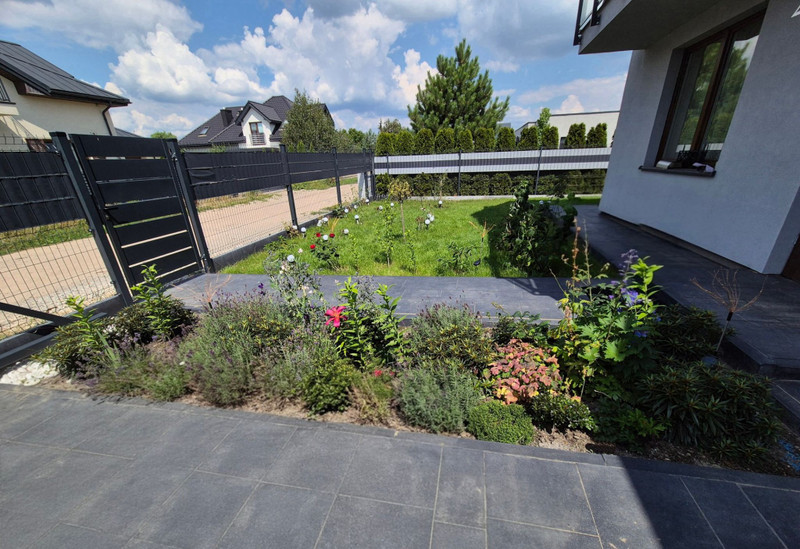 Całoroczna rabata kwiatowa – eksplozja kolorów od wczesnej wiosny do późnego lata: róże, lilie, rododendrony, azalie, tulipany, hibiskusy, budleje, lawenda oraz owoce: agrest, maliny, jeżyny