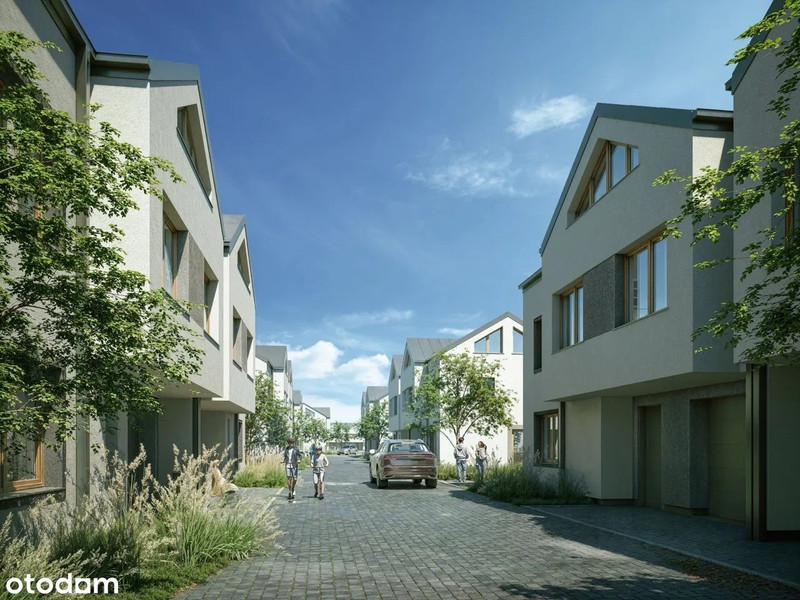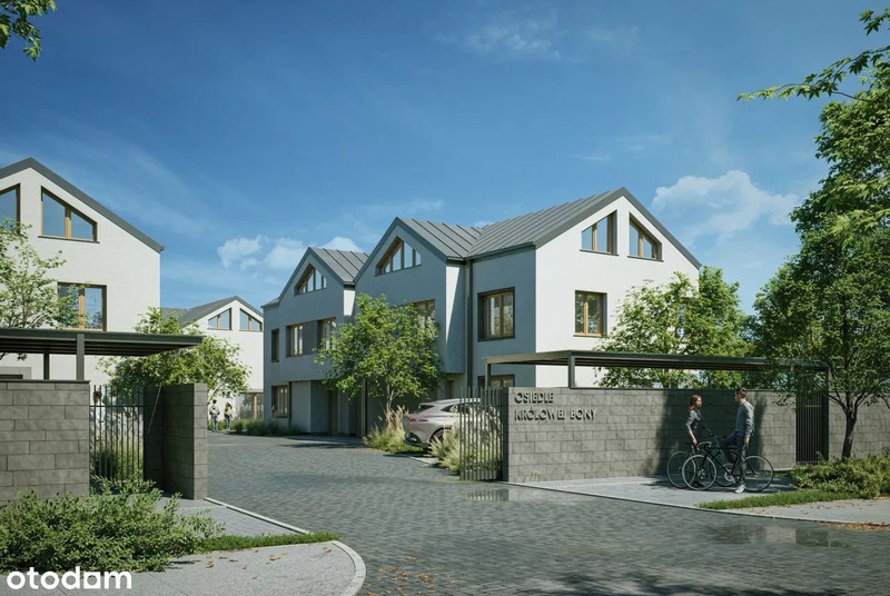 Każdy z domów będzie miał ogrodzony ogród z własną furtką od strony ulicy Królowej Bony stanowiącej wewnętrzny ciąg pieszo jezdny wykończony kostką brukową pomiędzy budynkami.