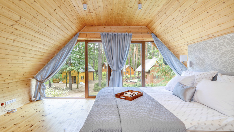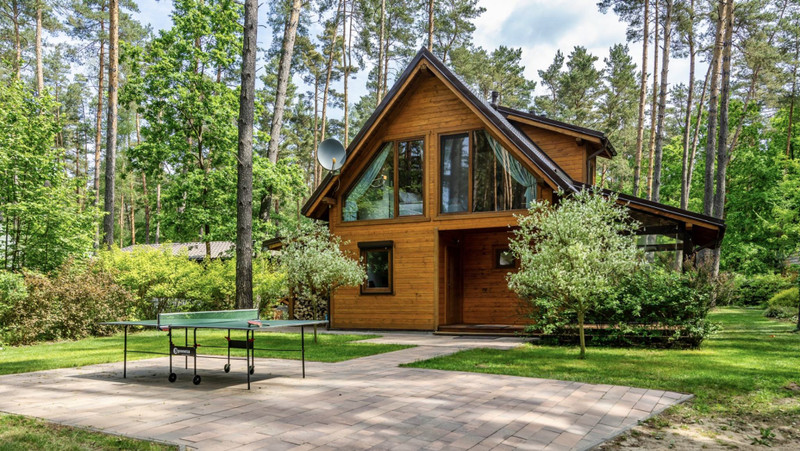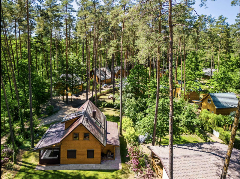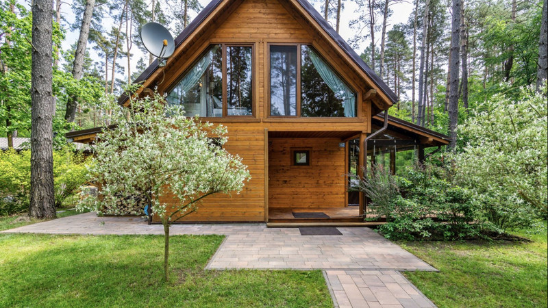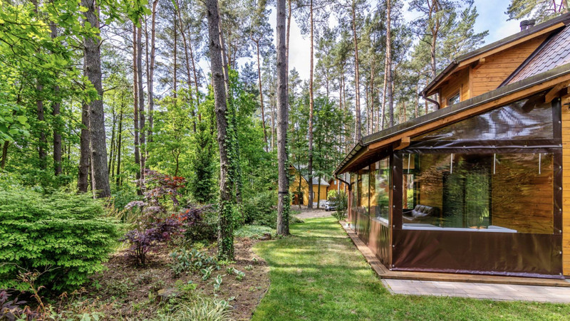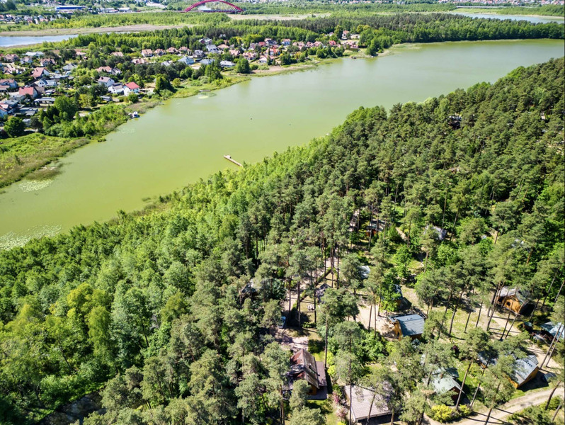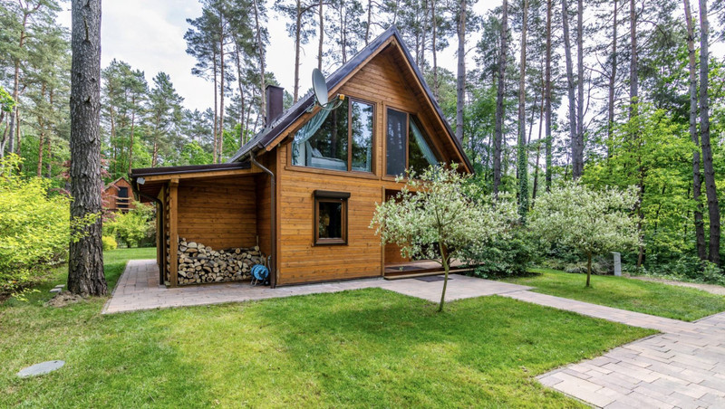 Domek o powierzchni 84 metrów, posadowiony na dwóch działkach rekreacyjnych wśród wysokich drzewo o łącznej powierzchni 850 metrów. Działka zakupiona na zasadach udziału w całościowym terenie w otoczeniu domków wypoczynkowych. Teren ogrodzony, z ochroną, dostępem do jeziora, plażą, barem sezonowym.