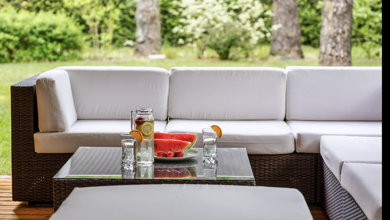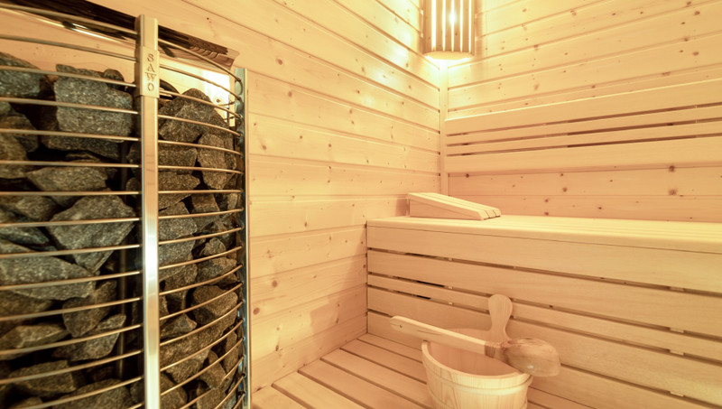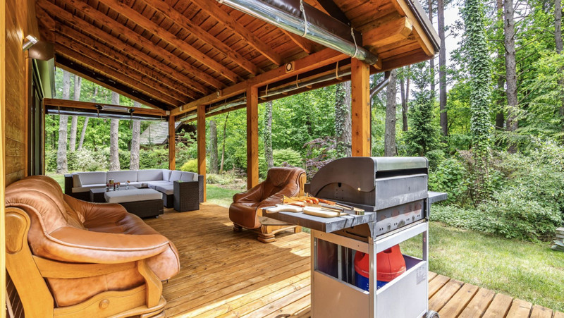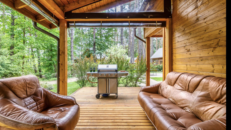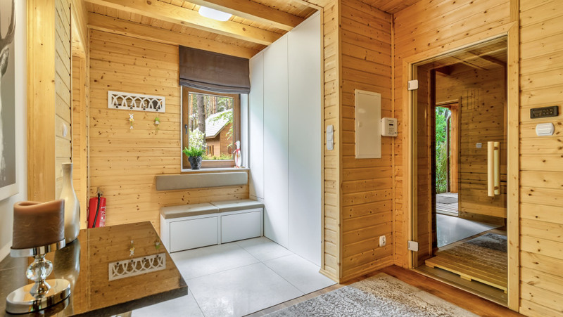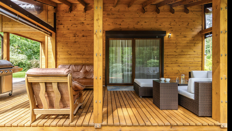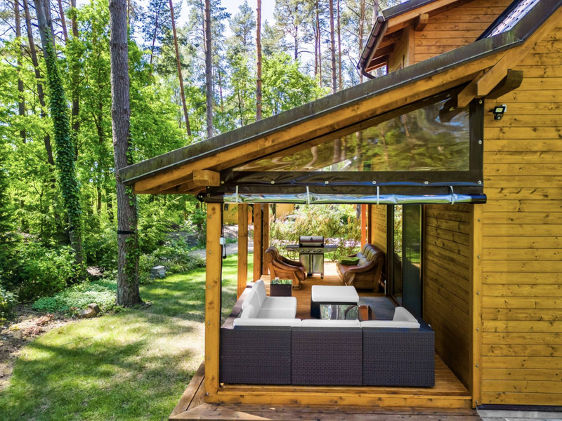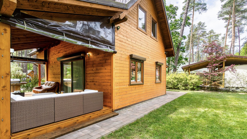 Piękny zadaszony taras wraz z roletami które idealnie sprawdzają się przy chłodniejszych wieczorach plus sauna elektryczna z dostępem od wewnątrz domu.