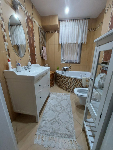 3) Piętra: cztery pokoje, najmniejszy wyposażony w szafy i pełniący funkcję garderoby, dwie sypialne oraz czwarty otwarty na hol jako pokój rekreacyjny, łazienka -wyposażona w umywalkę, wannę, zabudowane WC.