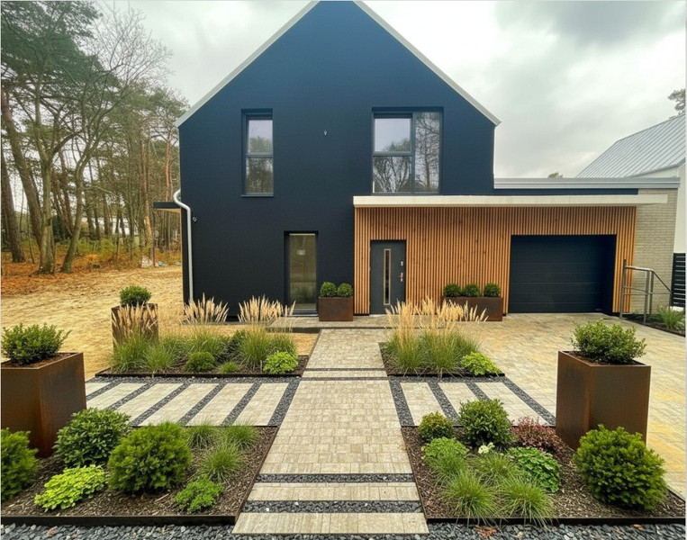 • dach: blacha na rąbek — minimalistyczna, trwała i nowoczesna