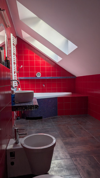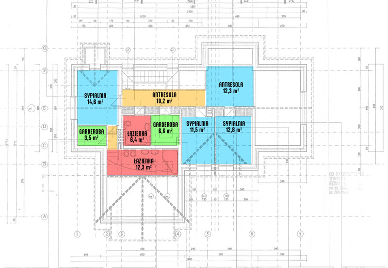 Piętro to strefa nocna, która składa się 3 sypialni (w tym jedna z własną łazienką, garderobą i balkonem), antresoli, łazienki i garderoby. Jest również strych, gdzie można składać różne „przydasie”.
