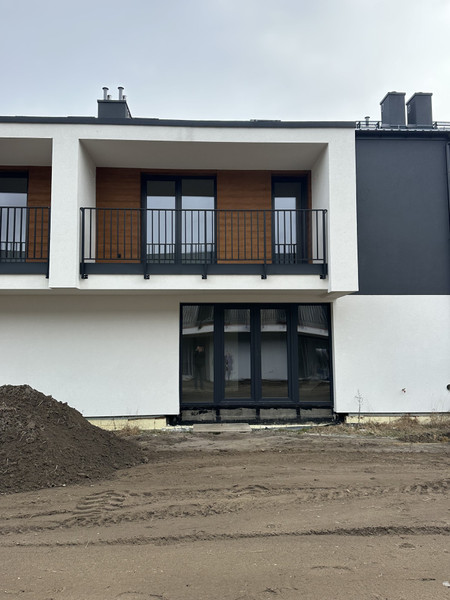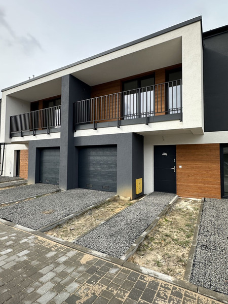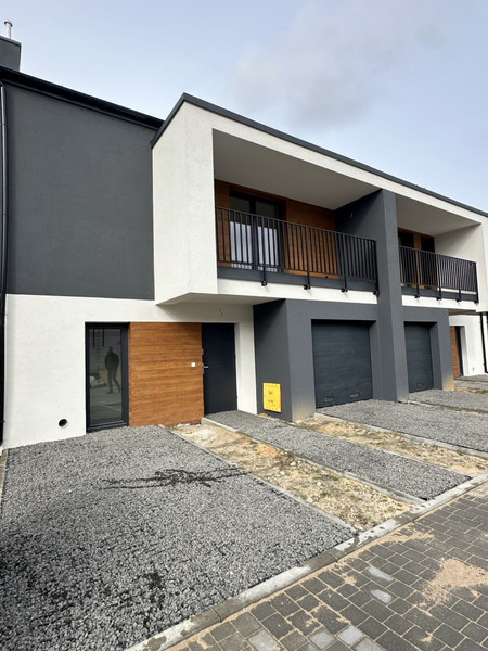 Na parterze znajduje się salon z aneksem kuchennym i wyjściem do ogrodu oraz łazienka, kotłownia i garaż jednostanowiskowy. Na pierwszym piętrze znajdują się cztery sypialnie z balkonami oraz łazienka. Jednak sypialnia może być wykorzystana na garderobę lub pralnię. Garaż może być przerobiony na kuchnię. Dom posiada też duży strych. Przed domem są dodatkowe dwa miejsca parkingowe. Ogrzewanie gazowe podłogowe. Stan deweloperski umożliwia aranżację wnętrz według własnego gustu i potrzeb.