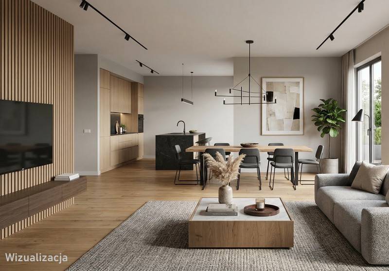 • przestronny salon z aneksem kuchennym i wyjściem na ogród