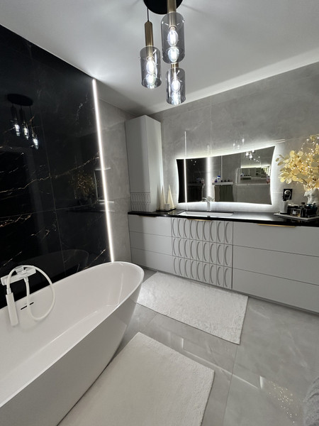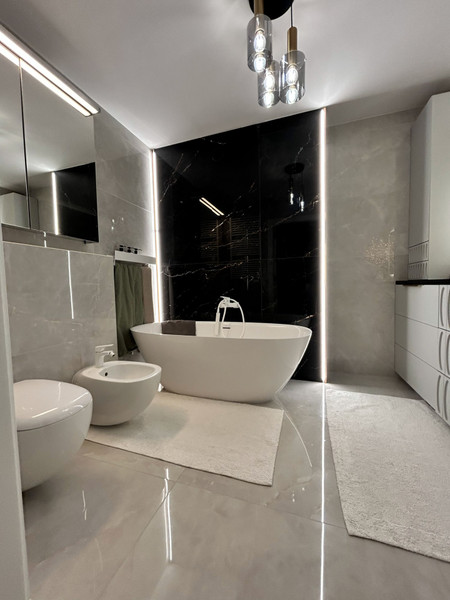 Łazienka 7,20m² z wanną wolnostojącą, wc, zabudowa meblowa;