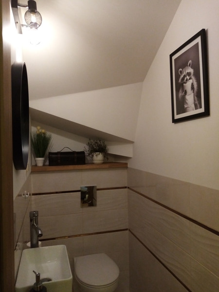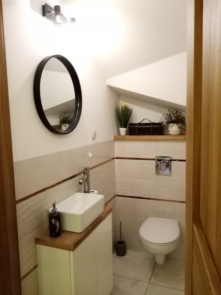 Poziom 1 - wiatrołap, toaleta, umeblowana kuchnia i salon