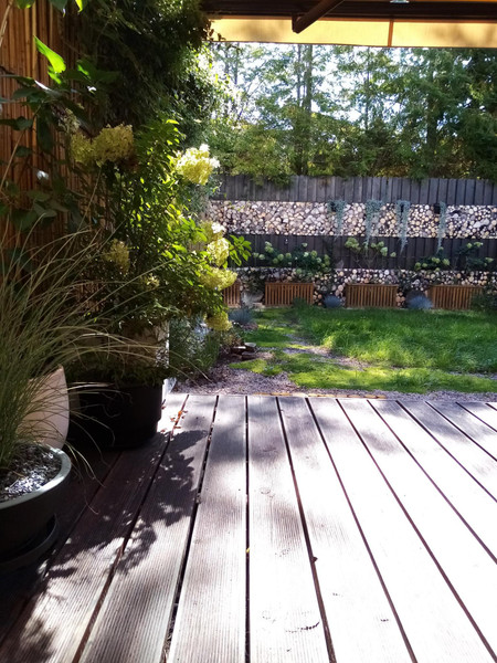 Za domem - wyjście z salonu na taras i do ogródka o powierzchni 64 m2