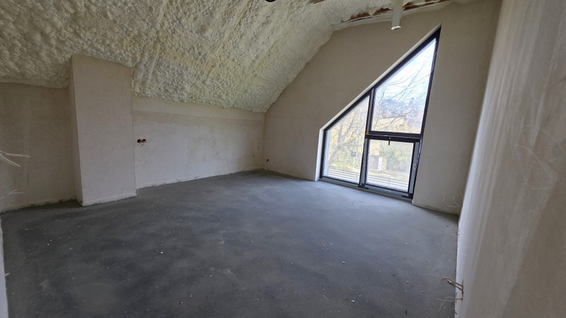 Duże pomieszczenie typu strych ze składanymi schodami – idealne miejsce do przechowywania.