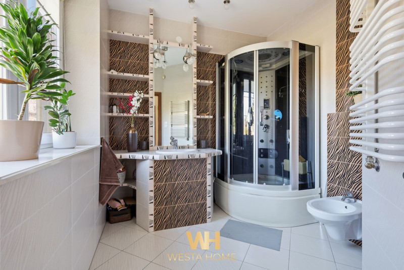Dodatkowo w bryle budynku znajduje się garaż (20m2) oraz pomieszczenie gospodarcze 6,5 m2 do którego mamy oddzielne wejście z tylnej części budynku.