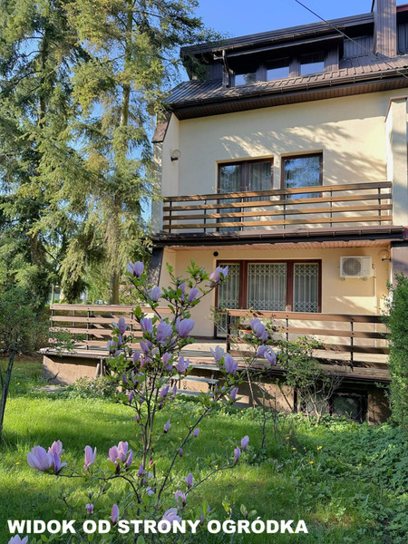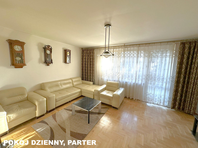 Pokój dzienny: 24m2, klimatyzacja, odnowiony parkiet, wyjście na taras: 23m2, płytki tarasowe, barierki drewniane, wyjście schodkami na ogród;