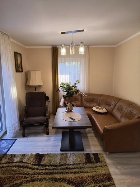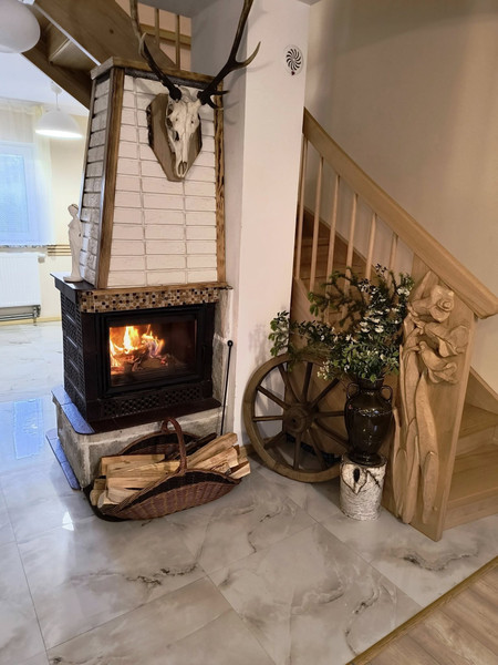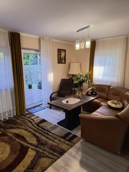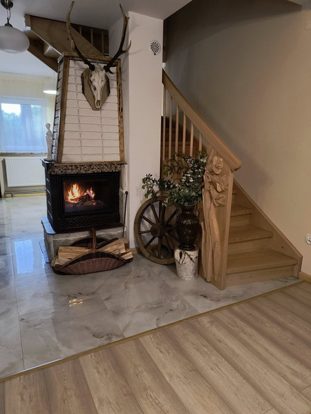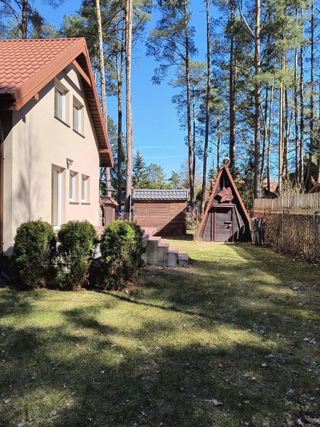 Dom całoroczny, rok budowy 2021-2022, powierzchnia działki 619 m2. budynek jednokondygnacyjny, podpiwniczony z użytkowym poddaszem o pow mieszkalnej 100 m2 i pow całkowitej 162 m2. Wykonany w technologi energooszczednej tradycyjnej, głównym materiałem konstrukcyjno budowlanym jest kamień = fundamenty, piwnice, część ścian garażu, patio, wejścia ,tarasy, schody zewnętrzne itp oraz cegła dziurawka i bloczki gazobetonowe. Budynek ocieplony, ściany zewnętrzne, stropy, podłogi. Wszystkie okna 3 szybowe. Instalacje techniczne zasileń cw/zw itp w izolacji termicznej. Ogrzewanie: piec stalowy 2 funkcyjny drewno/elektr do wyboru. Grzejniki stalowe modułowe z termostatyka, czynnik grzewczy olej glikolowy. Dodatkowo w salonie bardzo wydajny kominek. Kanalizacja z sieci ( wiejskiej ). Doskonała woda, ujęcie dla całej enklawy działek z głębokości 140 m/ prawie oligocen. Zasilanie energetyczne kablowe w ziemi 3 fazowe 400V pomiar w skrzynce na zew ogrodzenia. Integralnymi elementami obiektu, jest przykryta wspólnym spadem dachu ( blachodachówka ) 38 m2 przestrzeń posiadająca solidne, zamykane wejście i wjazd z obu stron wraz z zewnętrzną wiatą na drewno, do dowolnej aranżacji. Aktualnie pełni funkcje garażu i warsztatu. Z salonu na parterze wychodzi się na 17 m2 taras a przy wejściu głównym jest zadaszone patio- ganek, pod którego stropem znajduję sie piwnica na łódz. Na działce znajduję się dwuspadowy stylowy budynek gospodarczy 10 m2 kryty tożsamą blachodachówką. Są także wyodrębnione miejsca na ognisko, suszarnio wędzarnia, placyki wyłożone kostką, na stoły fotele leżaki, parasole etc. Sprzedaż obejmuje bardzo dobrej jakości wyposażenie i meble z 2022 r. oraz sprzęt i narzędzia ogrodnicze, meble ogrodowe, rowery i łódz wraz z silnikiem elektrycznym. Obiekt posiada alarm i dozór elektroniczny z możliwością jego dowolnego rozbudowania.