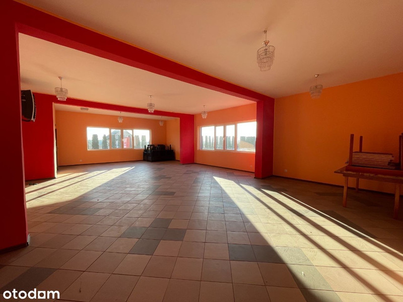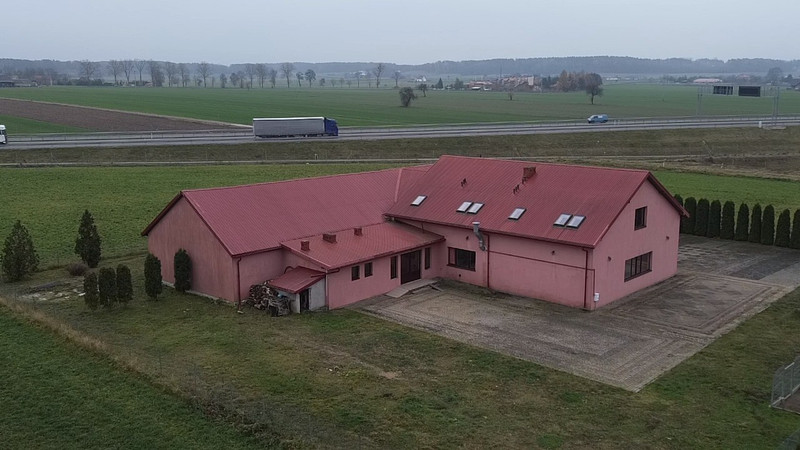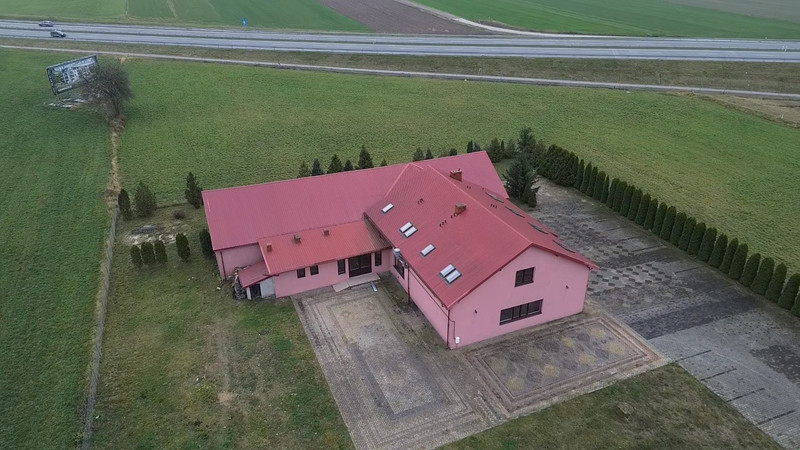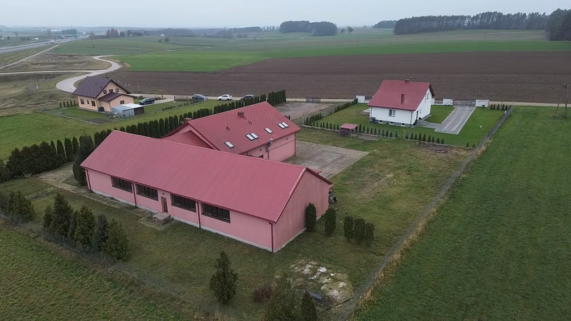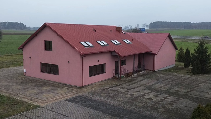 Lokal użytkowy o powierzchni 840 m2. Nieruchomość wybudowana w 2012 roku. Budynek składa się z trzech kondygnacji. Na parterze znajduje się hol, łazienki damskie, męskie oraz dla osób niepełnosprawnych (pomieszczenia wyposażone w szafki z umywalkami, kompakty WC, pisuary, pomieszczenia wyłożone terakotą oraz glazurą), szatnia, sala duża bankietowa (powierzchnia 300 m2), zaplecze gastronomiczne (zmywalnia, chłodnia, pomieszczenie przygotowania i obróbki warzyw), mała sala bankietowa (powierzchnia 85 m2), zaplecze małej sali bankietowej (pomieszczenia socjalne, WC damsko-męski). Na piętrze o powierzchni 196 m2 znajduje się 8 pokoi. Pokoje wyposażone są w oddzielne WC (wyposażone w kabiny prysznicowe, kompakty wc, szafki z umywalkami). W piwnicy (powierzchnia 84 m2) znajdującej się pod zapleczem gastronomicznym znajdują się dwa kotły grzewcze (25 KW), które zasilają nagrzewnice wodne, system ogrzewania podłogowego, system ogrzewania ciepłej wody użytkowej oraz system ogrzewania grzejnikowego. Budynek posiada przyłącze energetyczne 26 KWh, zbiornik na szambo oraz instalację wodną. Ponadto wyposażony jest w instalację przeciwpożarową. Teren wokół budynku wyłożony jest kostką brukową (parking na około 60 pojazdów). Nieruchomość położona jest przy trasie ekspresowej S61. Nieopodal znajduje się wjazd w obu kierunkach (Warszawa, Augustów). Teren wokół budynku jest ogrodzony, posiada oddzielny wjazd. Na terenie znajduje się wiele krzewów (tuja szmaragd oraz brabant). W latach 2012-2020 prowadzona była działalność agroturystyczna (dom weselny oraz imprezy okolicznościowe). Budynek posiada wszelkie pozwolenia, odbiory oraz instalację elektryczną, przeciwpożarową spełniającą aktualne normy.