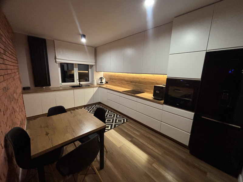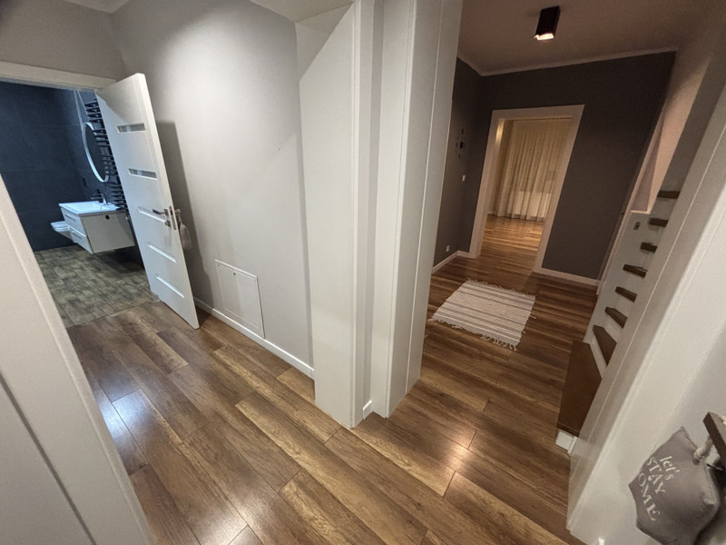 Dom składa się z wiatrołapu, korytarza, kuchni, jadalni, salonu, pokoju gospodarczego, łazienki, 3 pokoi na piętrze oraz łazienki na piętrze, piwnicy. Dom jest w pełni wyposażony oraz gotowy do zamieszkania. Ocieplenie wykonane zostało w 2023r. Dom ogrzewany jest kotłem zagazowującym drewno. Wszelkie meble wykonane są pod zabudowę. Dom sprzedaję wraz z całym wyposażeniem: meble, agd, rtv.