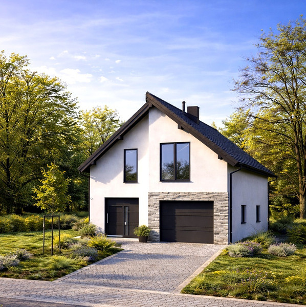 Ten dom na sprzedaż oferuje 157,27 m² powierzchni na parterze i poddaszu użytkowym. Wybudowany z maxa z nowoczesnym dachem i przewidywanym ogrzewaniem gazowym.