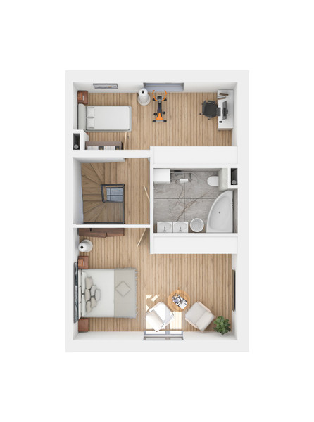- 2 piętro - 2 sypialnie, łazienka, komunikacja