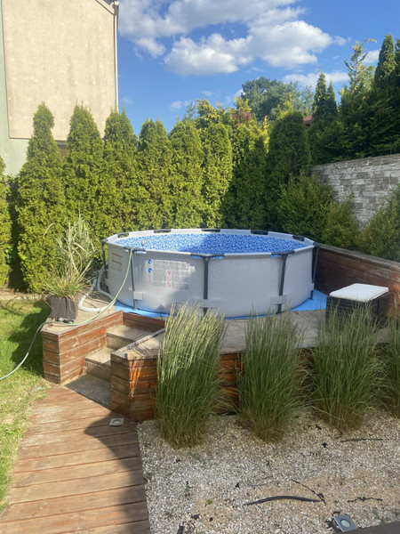 Działka: 374 m2, ogrodzona, z zagospodarowanym ogrodem, domkiem gospodarczym, taras o powierzchni 40 m2, stanowisko na basen, miejsce postojowe oraz podjazd do garażu.